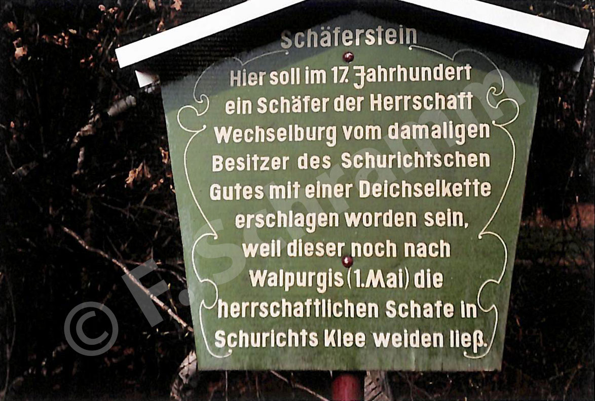 Die 1997 errichtete Tafel am Schäferstein. Leider hat der Zahn der Zeit an der Tafel genagt und nun ist diese nicht mehr vorhanden.
