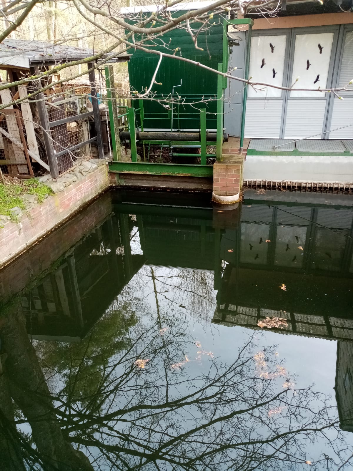 Der Lachsrechen im Unterwassergraben ist direkt vor der Wiedereinleitung in die Chemnitz hat eine Stabweite von 10 cm um zu vermeiden, das große Lachse von außen in den Graben schwimmen. Der Rechen ist für die Reinigung per Hand schwenkbar.